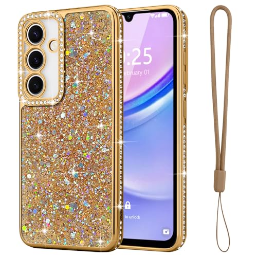 Lafunda for Samsung A15 4G/5G Case for Women Girls, Luxury Bling Glitter Diamonds Crystal Festival Shiny Case Camera Protection Shockproof Silicone TPU Phone Cover for Galaxy A15 4G/5G 6.5", Gold