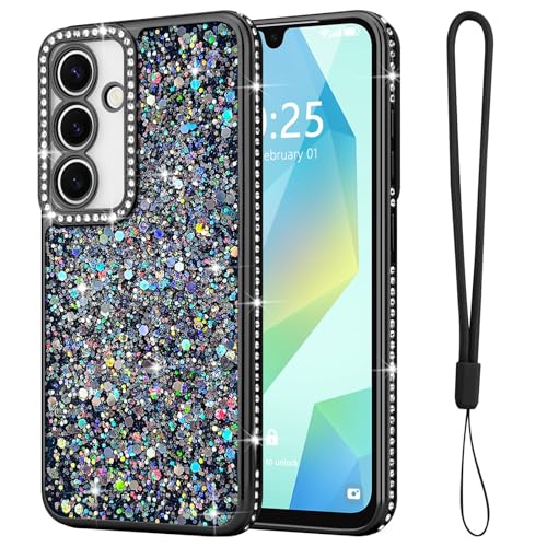 Lafunda for Samsung A16/A16 5G Case for Women Girls, Luxury Bling Glitter Diamonds Crystal Festival Shiny Case Camera Protection Shockproof Silicone TPU Phone Cover for Galaxy A16/16 5G 6.7", Black