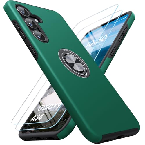 AOUIA for Samsung A34 5G 6.6" Case with 2 Screen Protector, [Anti Scratch] [Anti Fingerprint],Case with 360°Ring Kickstand Mobile Phone Cover for Samsung A34 5g [TPU + PC], Green
