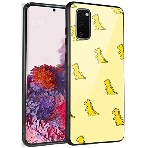 MAYCARI Cute Dinosar(Yellow) Phone Case Designd for Samsung Galaxy S20 5G for Women Girls, Shockproof Hard Back Case with Soft TPU Bumper Cover Phone Case for Samsung Galaxy S20 5G 6.2 Inch