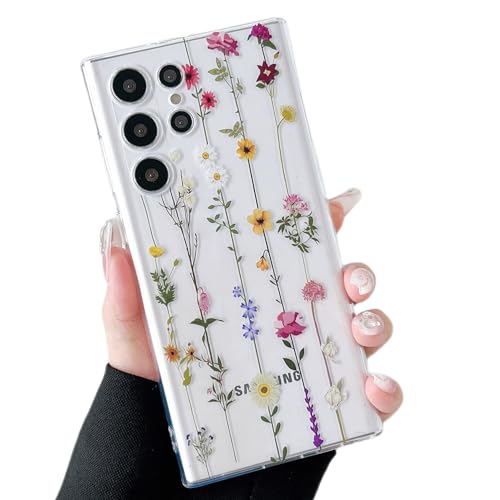 ZTOFERA Compatible with Samsung Galaxy S22 Ultra 5G (6.8") Case for Girls Women, Flexible Soft Silicone Protective Phone Case with Cute Climbing Flowers Floral Pattern Shockproof Bumper Cover, Clear