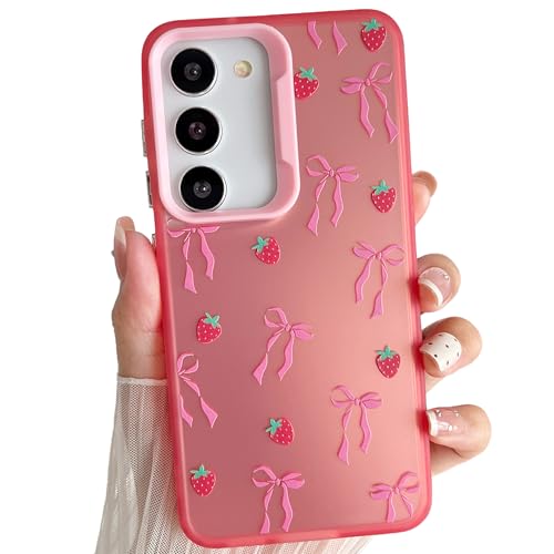 ZTOFERA Pink Case for Samsung Galaxy S23 Plus/S23+ 5G (6.6"), Aesthetic Phone Case with Cute Ribbon Bowknot Pattern, Glossy Hard PC Back Silicone Bumper Shockproof Cover for Girls Women - Strawberry
