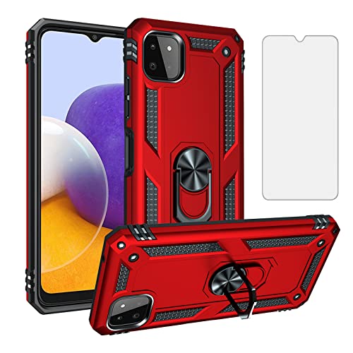 Asuwish Compatible with Samsung Galaxy A22 5G 6.6 inch Case with Tempered Glass Screen Protector and Stand Ring Holder Magnetic Cell Accessories Phone Cover for Gaxaly A 22 22A G5 Women Men Red