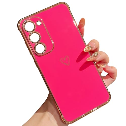 ZTOFERA Compatible with Samsung Galaxy S23 Plus 5G (6.6") Case for Girls Women, Flexible Silicone Protective Phone Case with Cute Love Heart Pattern Plated Trim Shockproof Bumper Cover, Hot Pink