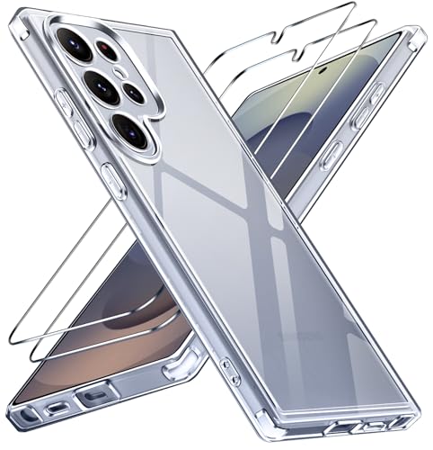 ivoler Case for Samsung Galaxy S25 Ultra 5G 6.9” with 2 Pack Tempered Glass Screen Protector, [Military Grade Protection] Slim Phone Bumper Cover Clear [Anti-Scratch] [Non-Yellowing]