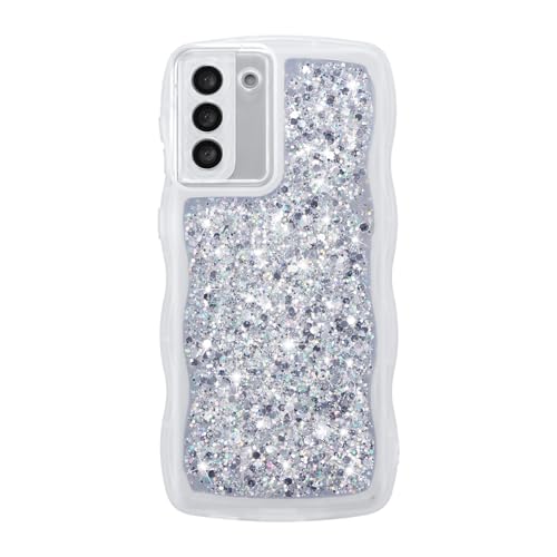 ZTOFERA Wavy Case for Samsung Galaxy S21 5G (6.2"), Cute Girly Clear Curly Wave Frame Glitters Shiny Sequins Aesthetic Phone Case Soft TPU Lightweight Shockproof Bumper Protective Cover - White