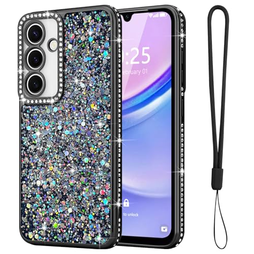 Lafunda for Samsung A15 4G/5G Case for Women Girls, Luxury Bling Glitter Diamonds Crystal Festival Shiny Case Camera Protection Shockproof Silicone TPU Phone Cover for Galaxy A15 4G/5G 6.5", Black
