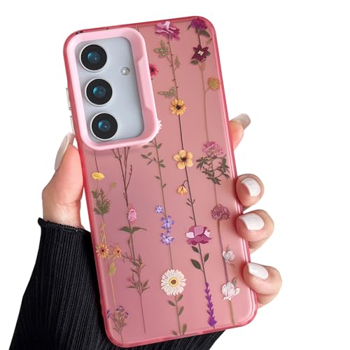 ZTOFERA Pink Case for Samsung Galaxy S24+/S25+ 5G (6.7"), Aesthetic Phone Case with Cute Floral Pattern, Glossy Hard PC Back Silicone Bumper Shockproof Cover for Girls Women - Climbing Flower