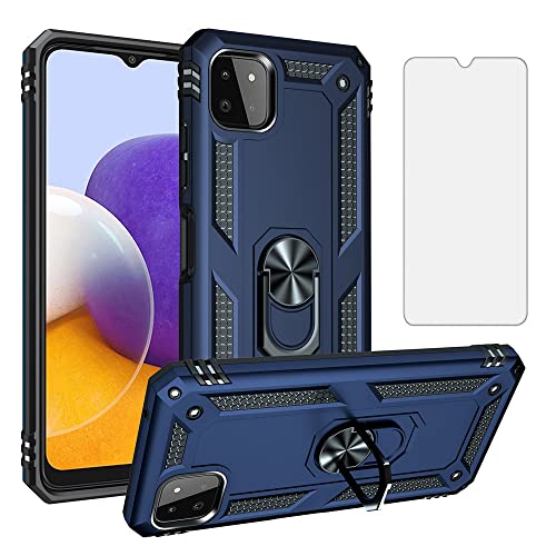 Asuwish Compatible with Samsung Galaxy A22 5G 6.6 inch Case with Tempered Glass Screen Protector and Stand Ring Holder Magnetic Cell Accessories Phone Cover for Gaxaly A 22 22A G5 Women Men Blue