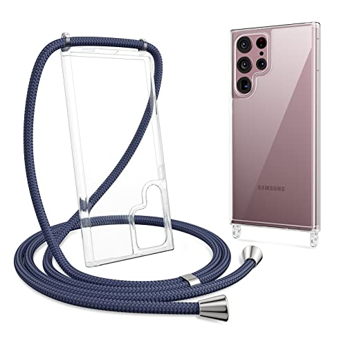 ZTOFERA Crossbody Lanyard Case for Samsung Galaxy S22 Ultra 5G (6.8"), Ultra Clear Hard Back + Soft Bumper Protective Phone Case with Strap Adjustable Neck Cord Shockproof Cover, Navy Blue