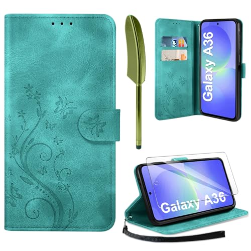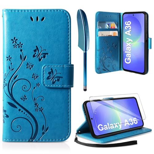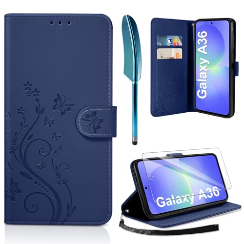 PIXFAB Case for Samsung Galaxy A36, Leather Wallet Phone Case, Magnetic Book Flip Folio Cover [RFID Protection & Card Slots] and [Kickstand] Phone Case with 2 Screen Protector for Samsung A36 - Blue
