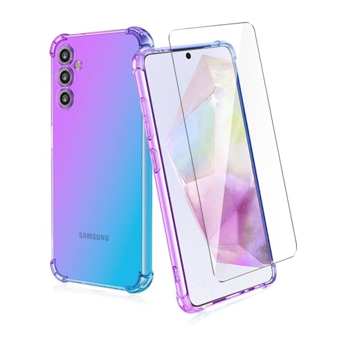 Wanglaism Case for Samsung Galaxy A36 5G Case with 1 Pack Tempered Glass Screen Protector, Soft Bumper Anti-Scratch Silicone Phone Case Cover-Purple/Blue