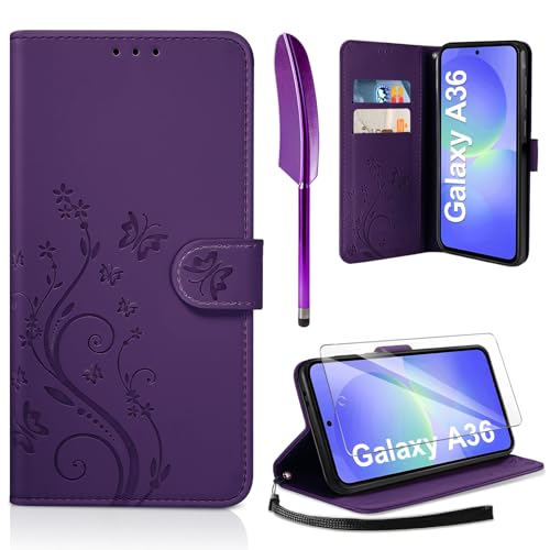 AROYI Case Compatible with Samsung Galaxy A36 5G Case,Wallet Case PU Leather with Card Slots Folding Stand Magnetic Protect Flip Cover for Samsung Galaxy A36 5G Dark Purple