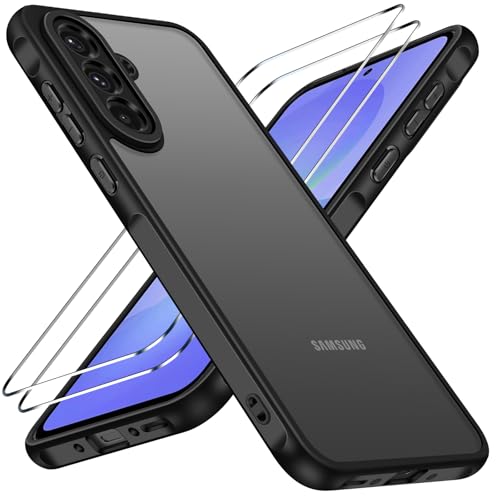 ivoler Case for Samsung Galaxy A36 5G with 2 Pack of Tempered Glass, [Military Standard] Shockproof [Camera Protection] Phone Case, Matte Translucent Back Anti-Fingerprint Protective Case, Black