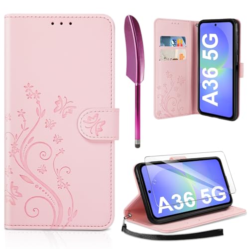 AROYI Case Compatible with Samsung Galaxy A36 5G Case,Wallet Case PU Leather with Card Slots Folding Stand Magnetic Protect Flip Cover for Samsung Galaxy A36 5G Pink