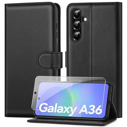 ivencase Compatible with Samsung Galaxy A36 5G Case with 1 HD Screen Protector, PU Leather Flip Wallet Phone Case with Card Slots Stand [RFID Blocking] Magnetic Closure for Samsung A36 - Black