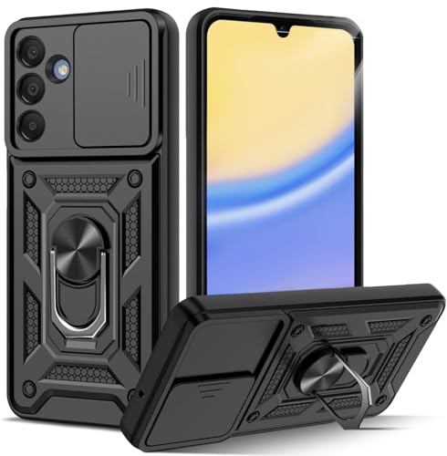 PIXFAB for Samsung Galaxy A36 Phone Case, Shockproof Case with Camera Lens Protection, Protective Ring Armour Cover [Kickstand], Phone Case for Samsung Galaxy A36 (5G) - Black