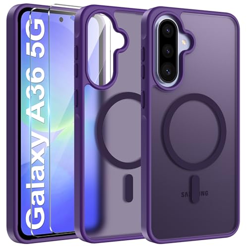 Opkiegrn Compatible with Samsung Galaxy A36 5G Case with 2 HD Screen Protector [Compatible with MagSafe] Military-Grade Shockproof Translucent Matte Phone Cover for Samsung Galaxy A36 5G - Darkpurple