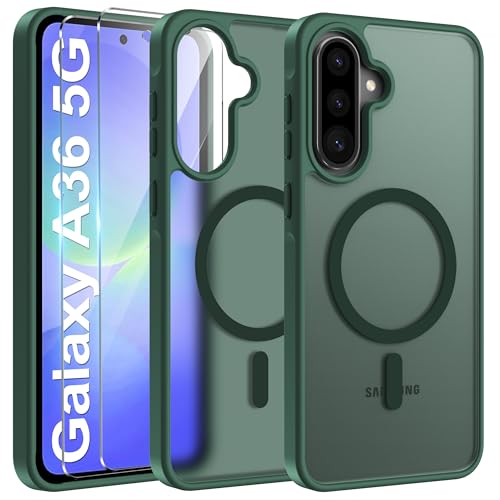 Opkiegrn Compatible with Samsung Galaxy A36 5G Case with 2 HD Screen Protectors, [Compatible with MagSafe] Military-Grade Shockproof Translucent Matte Phone Cover for Samsung Galaxy A36 5G - Darkgreen
