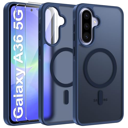 Opkiegrn Compatible with Samsung Galaxy A36 5G Case with 2 HD Screen Protectors, [Compatible with MagSafe] Military-Grade Shockproof Translucent Matte Phone Cover for Samsung Galaxy A36 5G - Darkblue
