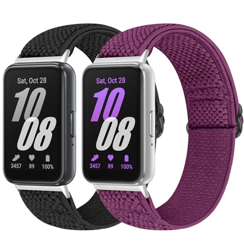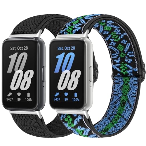 Bcuckood Elastic Nylon Straps Compatible with Samsung Galaxy Fit 3, 2PCS Adjustable Stretchy Nylon Replacement Straps Wristbands for Galaxy Fit3 SM-R390 Watch for Women Men