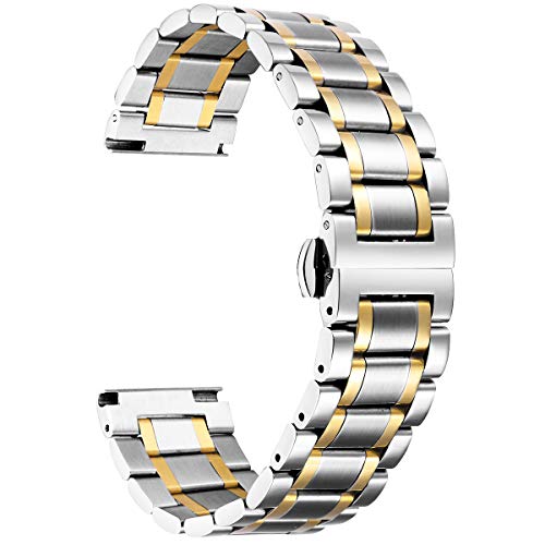 BINLUN Stainless Steel Watch Bands 12mm-24mm Replacement Smart Watch Straps with Straight&Curved Ends Universal fit for Samsung Galaxy Watch 6/5/4/3,Fit for Garmin Watch(Silver-Gold,19mm)