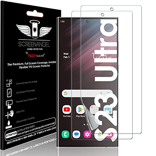 TECHGEAR 2 Pack Screen Protector fits Samsung Galaxy S23 Ultra 5G [Screen Angel Edition] [In-Display Fingerprint Support][Case Friendly][Bubble Free][FULL Screen Coverage] HD Clear Flexible TPU Film