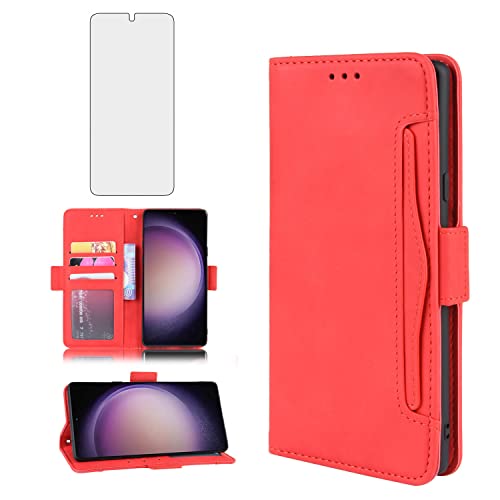 Compatible with Samsung Galaxy S23 Ultra 5G Wallet Case and Tempered Glass Screen Protector Card Holder Stand Leather Flip Cell Phone Cover for Gaxaly S23ultra 23S S 23 23ultra G5 Women Men Red