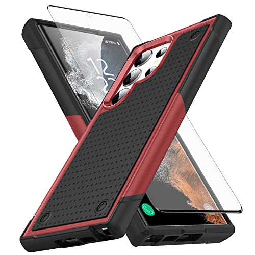Asuwish Phone Case for Samsung Galaxy S23 Ultra 5G with Tempered Glass Screen Protector Cover and Accessories Protective Dual Layer Rugged Hybrid S23Ultra 23S S 23 23Ultra 6.8 inch Women Men Red+Black