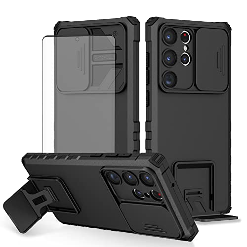 Tongate for Samsung Galaxy S23 Ultra Case, [Bulit-in Slide Camera Cover & Screen Protector] [2 Front Frame] Military Grade Shockproof S23 Ultra Phone Case with Kickstand & Belt-Clip 6.8", Black