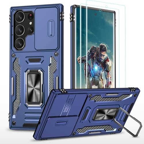 YmhxcY For Samsung Galaxy S23 Ultra Case, With [2*Screen Protector Film] 360° Rotate Metal Stand,Sturdy Case[Military Grade] For Samsung Galaxy S23 Ultra-Blue