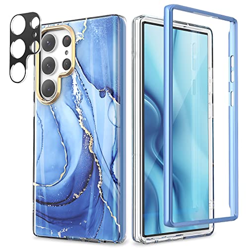 Chvelop Compatible with Samsung Galaxy S23 Ultra Case, [No Built-in Screen Protector] Marble Stylish Slim Soft, Military Grade Shockproof, Hard Durable Protective Cover S23 U 5G 2023, 6.8in Blue YGL