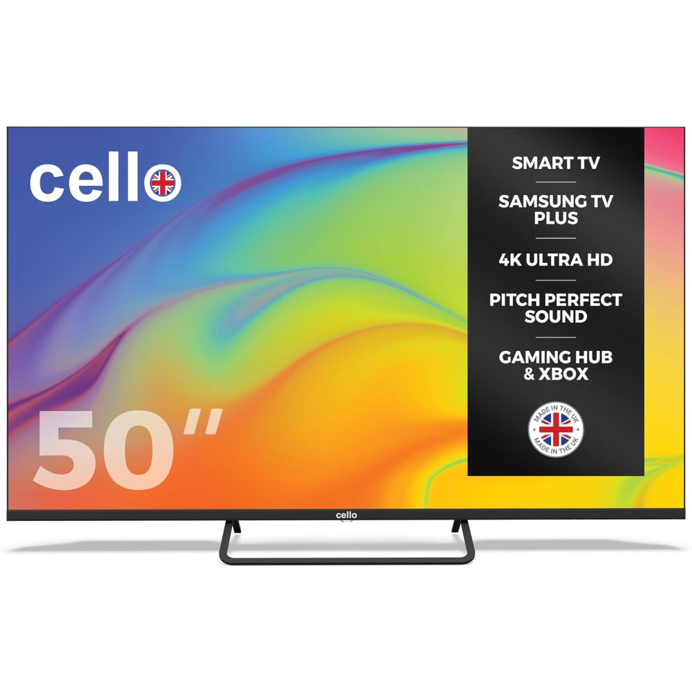 Cello C5025TZ Frameless 50" 4K Ultra HD Smart TV Samsung Tizen OS, Freeview & Freesat, Cloud Gaming, Bluetooth, HDMI, USB & Wi-Fi (2025)
