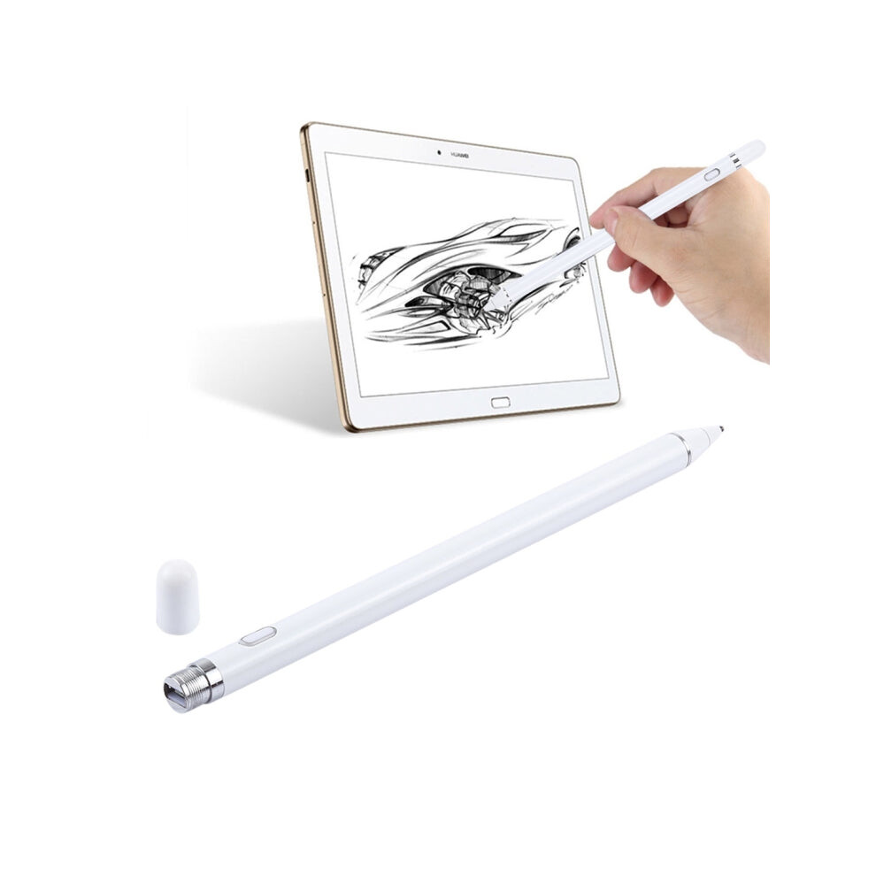 Universal Rechargeable Stylus Pen with 2.3mm Metal Nib for iPhone, iPad, Samsung & Tablets (White)