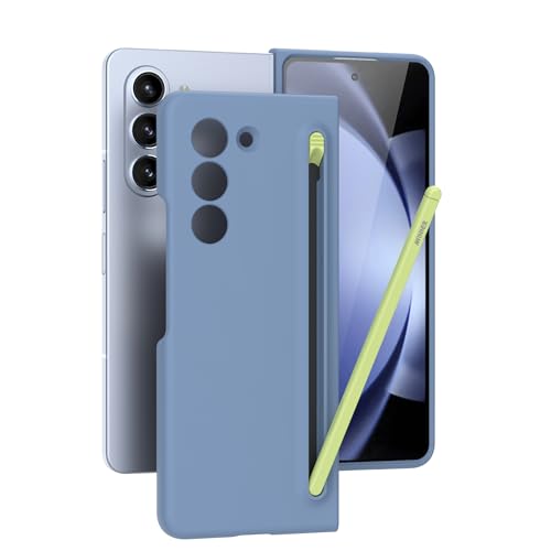 AWINNER Compatible for Samsung Galaxy Z Fold5 Slim S Pen Phone Case with Built-in New Compact S Pen, Holder and Storage Slot for Pen (Blue)