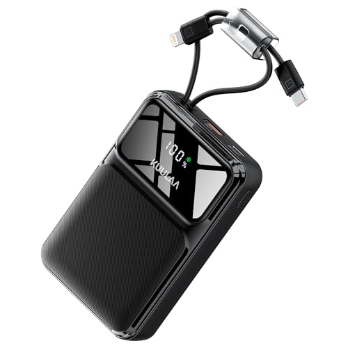 VRURC Mini Portable Charger with Built-in Cable,22.5W Fast Charging USB C Power Bank,10000mAh Mini Cell Phone Power Bank LED Display,Battery Pack for iPhone 17 16 Samsung Galaxy S25 Tablet(1 Pack)