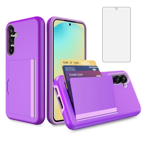 Asuwish Phone Case for Samsung Galaxy S23 FE 5G with Tempered Glass Screen Protector Cover and Credit Card Holder Stand Slim Hybrid Mobile Slot Cell Accessories S 23 EF S23FE 23S Women Men Purple