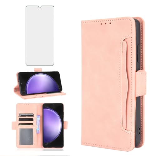 Asuwish Compatible with Samsung Galaxy S23 FE 5G Wallet Case and Tempered Glass Screen Protector Card Holder Stand Leather Flip Cell Accessories Phone Cover for S23fe S 23FE S 23 Women Men Rose Gold