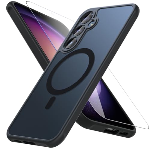 Hensinple for Samsung S23 FE Case,Samsung Galaxy S23 fe Case for Magsafe with Tempered Glass Screen Protector, [Shockproof Military] Magnetic Bumper Cover Phone Case for Samsung S23 FE,Black