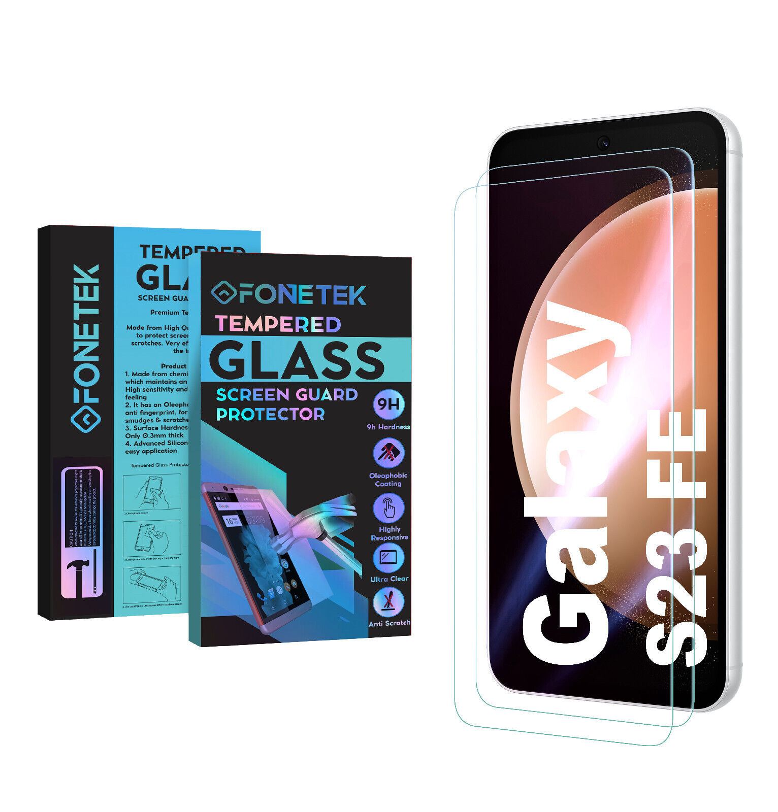Ibywind Screen Protector For Samsung Galaxy S23 FE 5G 6.4"[2 Pack],9H Hardness Tempered Glass,With 1Pc Camera Lens Protector,Easy to Install