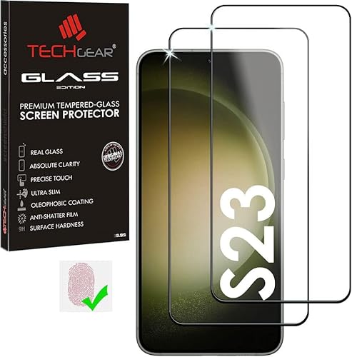 TECHGEAR 2 Pack PREMIUM Finger ID Glass Compatible with Samsung Galaxy S23 / S23 5G, Full Glue Tempered Glass Screen Protector [Finger ID] [Full Glue] [HD Clarity] [Scratch-Resistant] [Max Coverage]