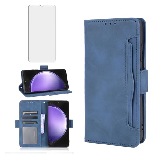 Asuwish Compatible with Samsung Galaxy S23 FE 5G Wallet Case and Tempered Glass Screen Protector Card Holder Stand Leather Flip Cell Accessories Phone Cover for S23fe S 23FE S 23 Women Men Blue