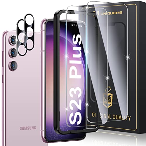 [2+2]UniqueMe Compatible with Samsung Galaxy S23 Plus/S23+ 5G -6.6 inch Screen Protector, Tempered Glass Screen Protector + Camera Lens Protector with Easy Installation Frame, Anti Scratch Bubble Free