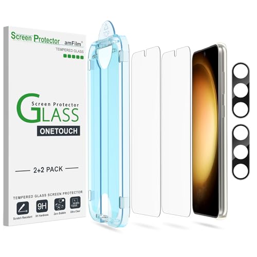 amFilm 2 Pack OneTouch Tempered Glass Screen Protector for Samsung Galaxy S23 5G 6.1 Inch, 9H Hardness with 2 Pack Tempered Glass Camera Lens Protector and Easy Installation Kit