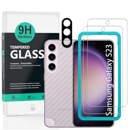 ivoler 3 Packs Screen Protector for Samsung Galaxy S23 5G with 1 Pack Camera Lens Protector and Installation Frame, Anti-Scratch Tempered Glass, Ultra HD, 9H Hardness