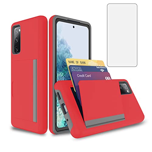 Asuwish Phone Case for Samsung Galaxy S23 Plus 5G with Tempered Glass Screen Protector Cover and Credit Card Holder Stand Slim Hybrid Cell Accessories S23+5G S23plus 23S + S 23 23+ Women Men Red