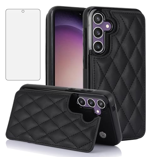 Asuwish Phone Case for Samsung Galaxy S23 FE 5G Wallet Cover with Tempered Glass Screen Protector and Leather RFID Credit Card Holder Stand Slot Cell Accessories S 23 EF S23FE 23S Women Men Black