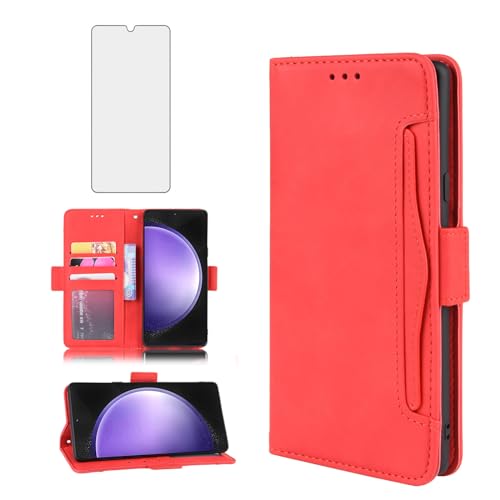 Asuwish Compatible with Samsung Galaxy S23 FE 5G Wallet Case and Tempered Glass Screen Protector Card Holder Stand Leather Flip Cell Accessories Phone Cover for S23fe S 23FE S 23 Women Men Red