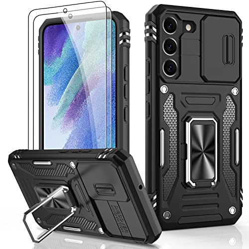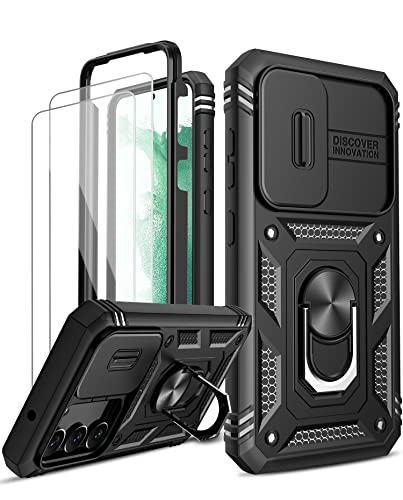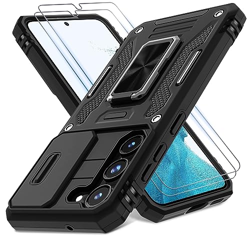 DEERLAMN Case for Samsung Galaxy S23+ Plus with Slide Camera Cover+Screen Protector(2 Packs),Rotated Ring Kickstand Military Grade Shockproof Protective Cover-Black