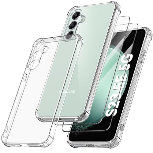 YisrLery 3 in 1 Camera Cover Compatible with Samsung Galaxy S23 FE 5G Case and 2 Pack Tempered Glass Screen Protector, Slim Soft TPU Shockproof Anti-Scratch Samsung S23 FE Phone Case Silicone Clear